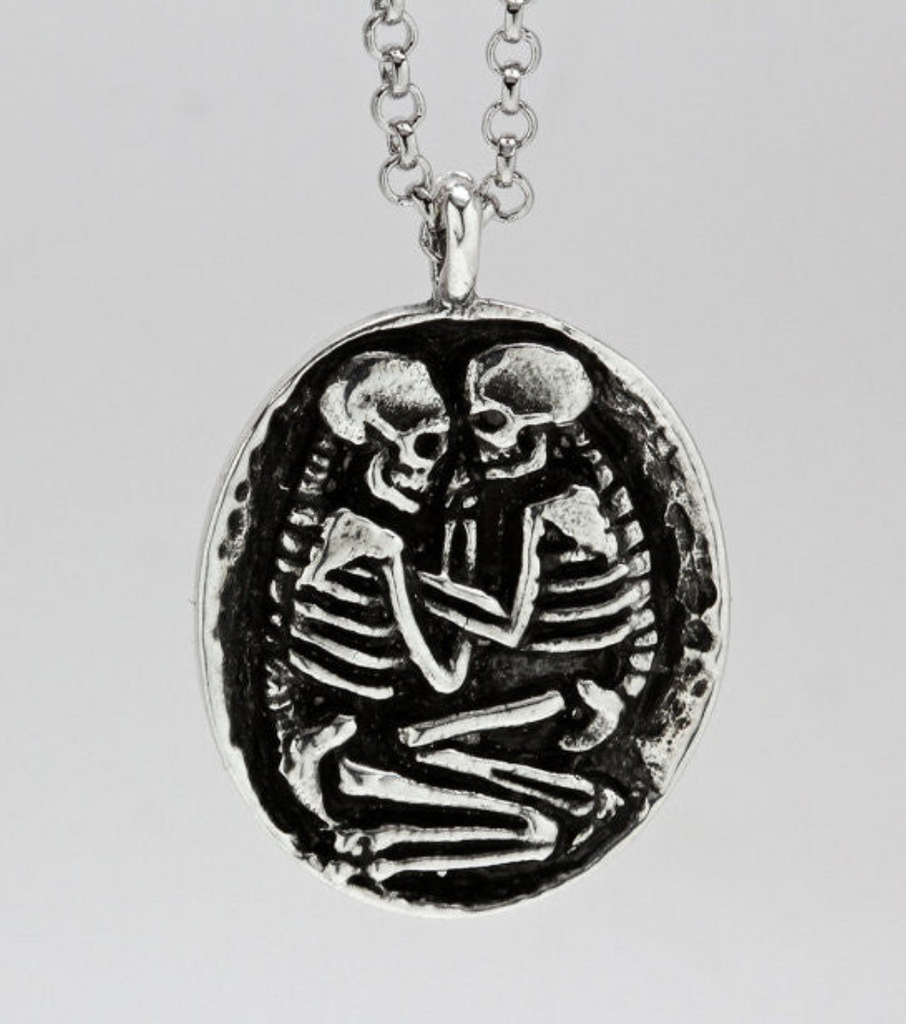 These skeleton lovers are a hand carved, original piece inspired by a recent archeological find. A collector of my work turned me onto the this image. It's very compelling. " Love you to death......"